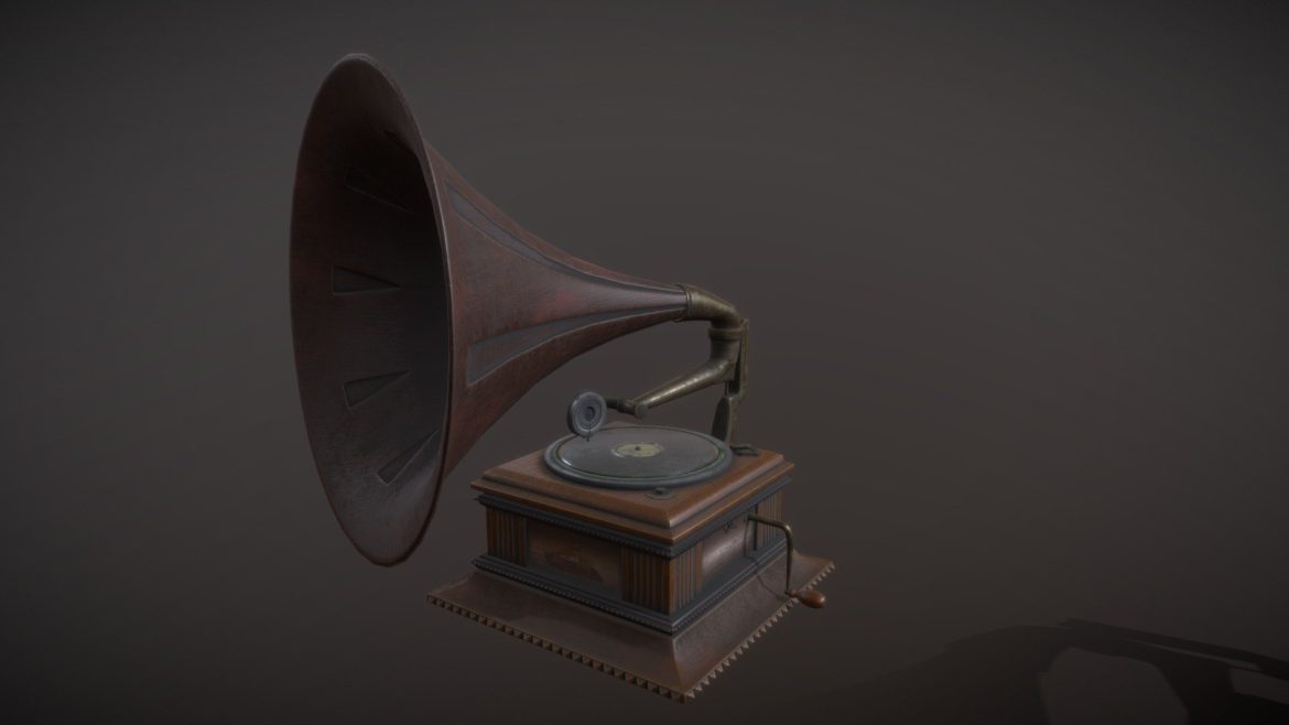 Gramophone model game asset. 2048 x 2048 for gramaphone 1024×1024 for record. 2 versions one with record other without. Record can also be used on a flat plane as there is enough normal data for curves.