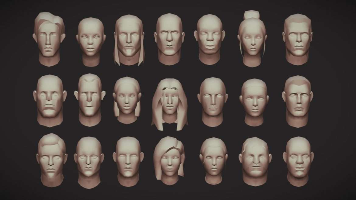 Low poly heads base meshes. Great asset to start your low poly models. Geometry about 1000 TRIS per head. Not include uv maps