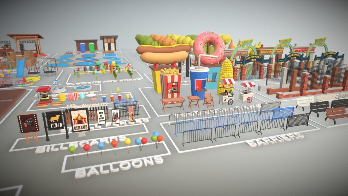 | Tags | amusement, blender-3d, bushes, fences, food, gamedev, lowpoly, park, pbr, playground, trees, unity, unreal |
