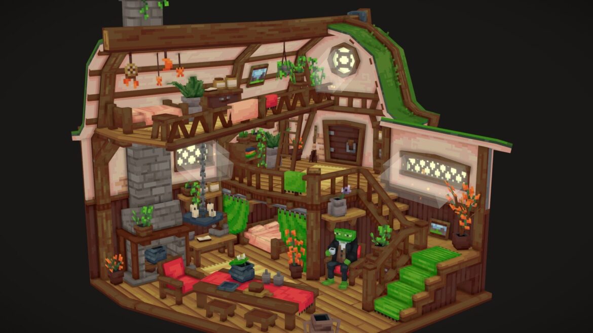 | Tags | blockbench, cabin, dream, fantasy, frog, grass, house, hut, interior, isometric-room, lowpoly, pixelart, room, voxel, wood, woodland, woodlandhideawaychallenge |